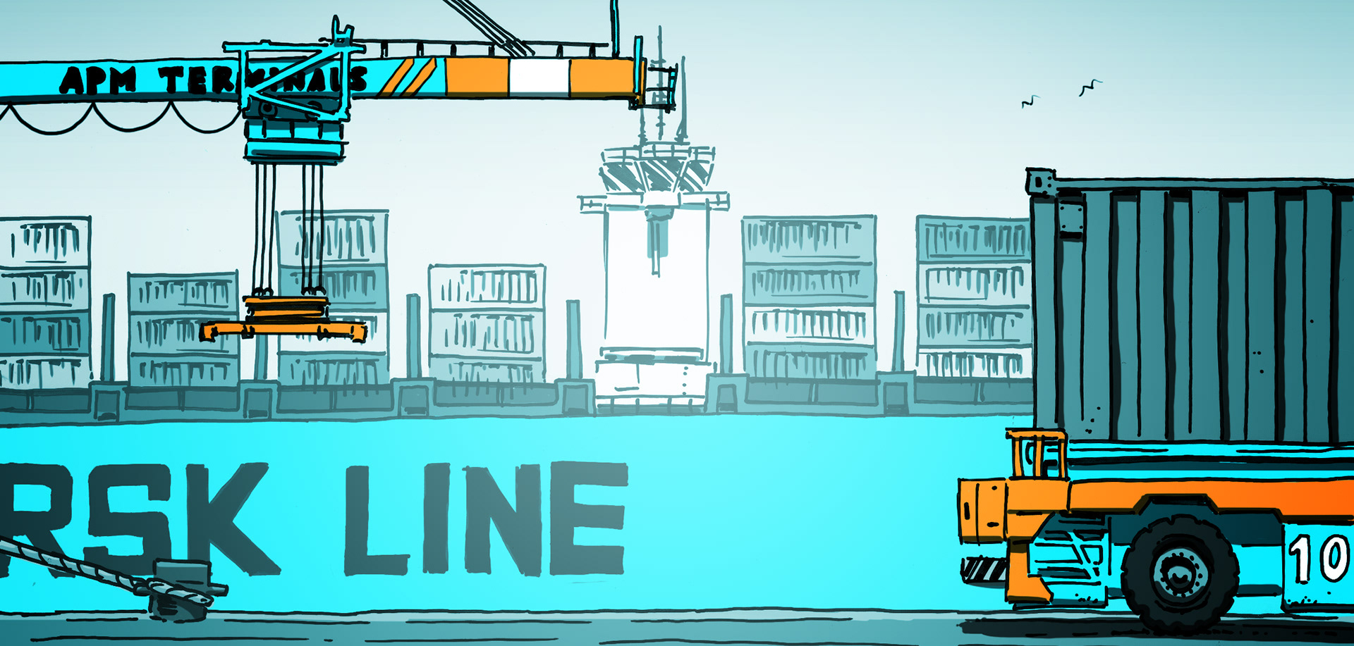 Illustrations for e-learning application for employees of APM Terminals Rotterdam. Client: APM Terminals Commissioned by: Tinqwise