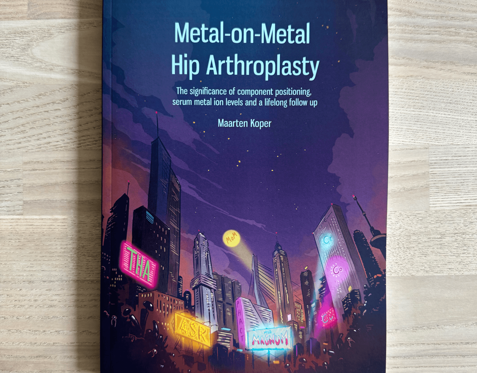 Voor Maarten Koper illustreerde ik de cover van zijn proefschrift "Metal-on-Metal Total Hip Arthroplasty: The Significance of Component Positioning, Serum Metal Ion Levels, and Lifelong Follow-up", dat hij op 17 september 2024 met succes verdedigde. Het ontwerp visualiseert de belichting van de verschillende materialen en typen heupprotheses, tegen een Rotterdamse setting.